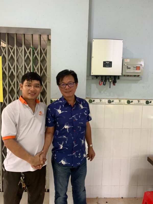 Trong ngày đóng điện hệ thống 20kwp cao cấp tại Gò Vấp cho anh Lộc. Giúp khách hàng triệt tiêu trung bình 80kwh điện hàng ngày.