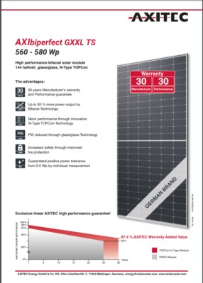 Dòng Tấm Pin AXIbiperfect GXXL TS 560 – 580 Wp: Sự Lựa Chọn Tối Ưu Cho Hiệu Suất Vượt Trội và Độ Tin Cậy